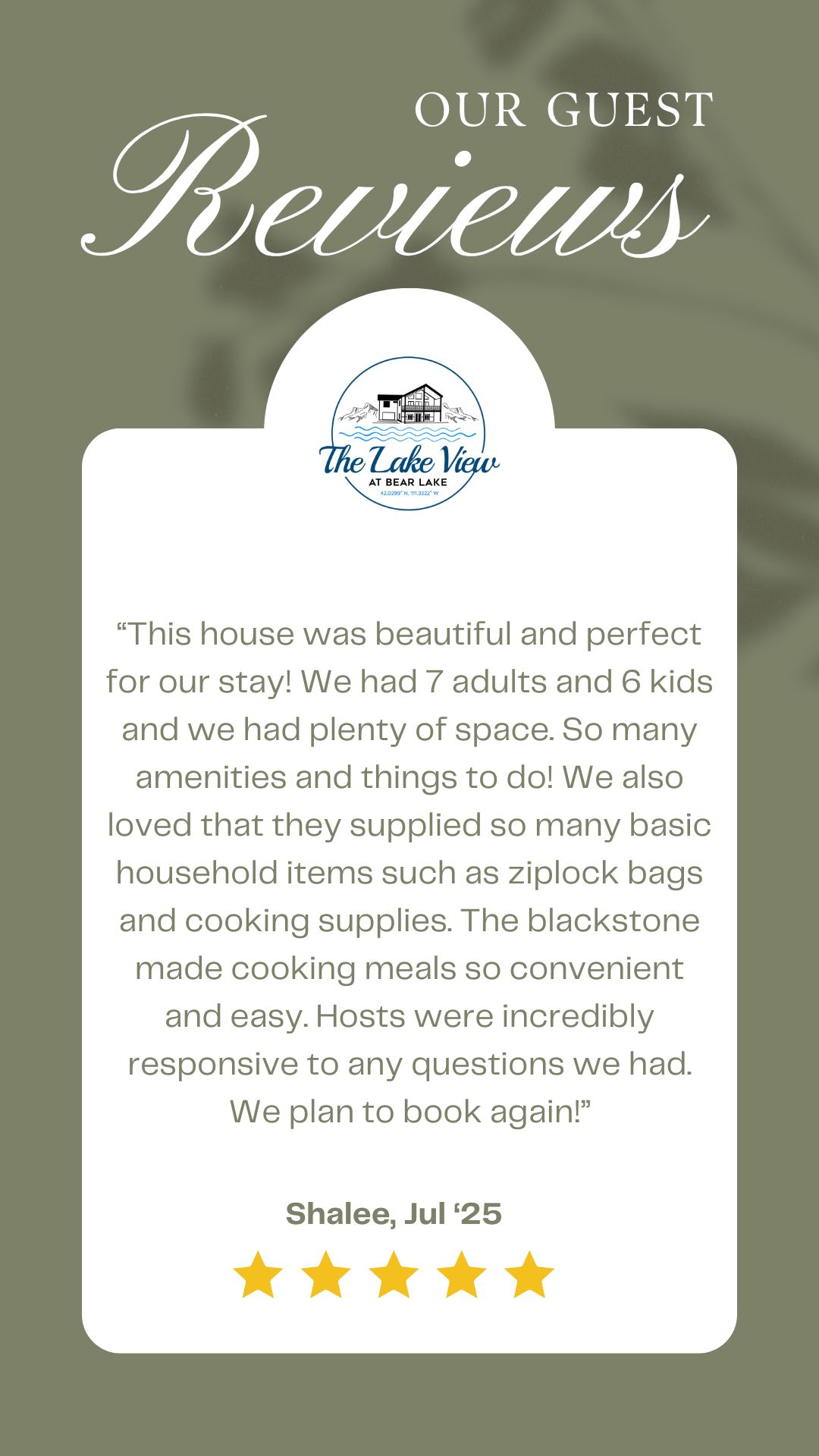 Thanks for considering The Lake View at Bear Lake for your next family vacation.